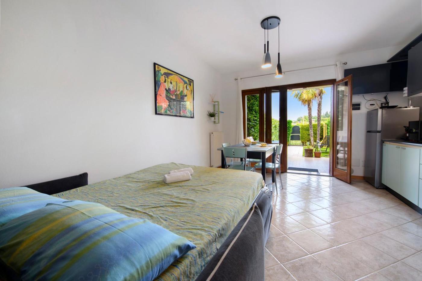 Appartamento con 1 Camera da Letto e Vista Giardino. Boasting a private entrance, this air-conditioned apartment features 1 living room, 1 separate bedroom and 1 bathroom with a shower and a hairdryer. Guests will find a dishwasher, kitchenware and a microwave in the kitchen. The apartment also comes with a barbecue. This apartment has a washing machine, a coffee machine, a TV with streaming services and a patio. The unit has 2 beds.