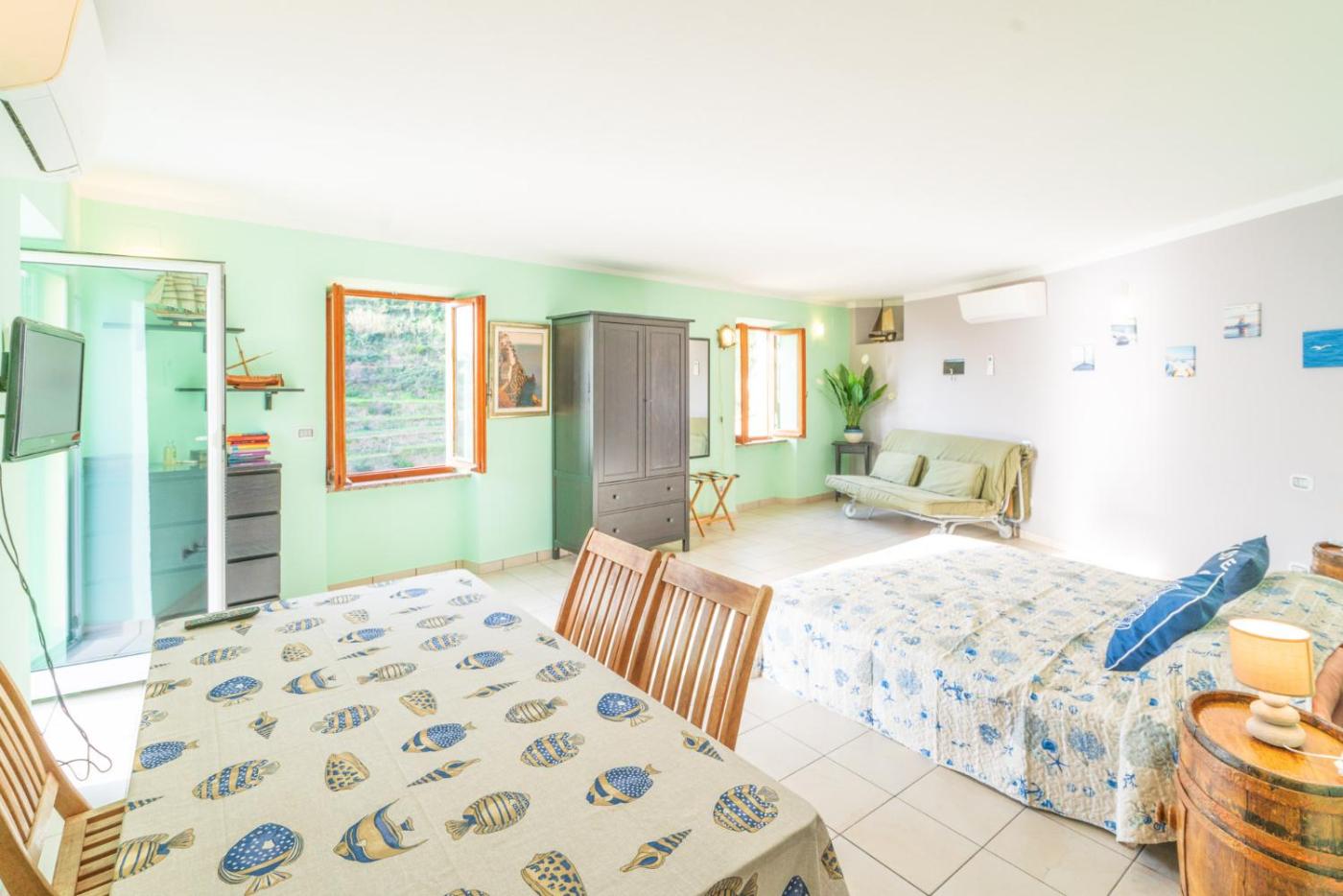 Appartamento Monolocale con Vista Mare. This apartment comes with 1 living room, 1 separate bedroom and 1 bathroom with a shower and free toiletries. Guests can make meals in the kitchen that features a stovetop, a refrigerator, kitchenware and an oven. The air-conditioned apartment features a flat-screen TV with cable channels, soundproof walls, a tea and coffee maker, a seating area as well as sea views. The unit has 3 beds. ;