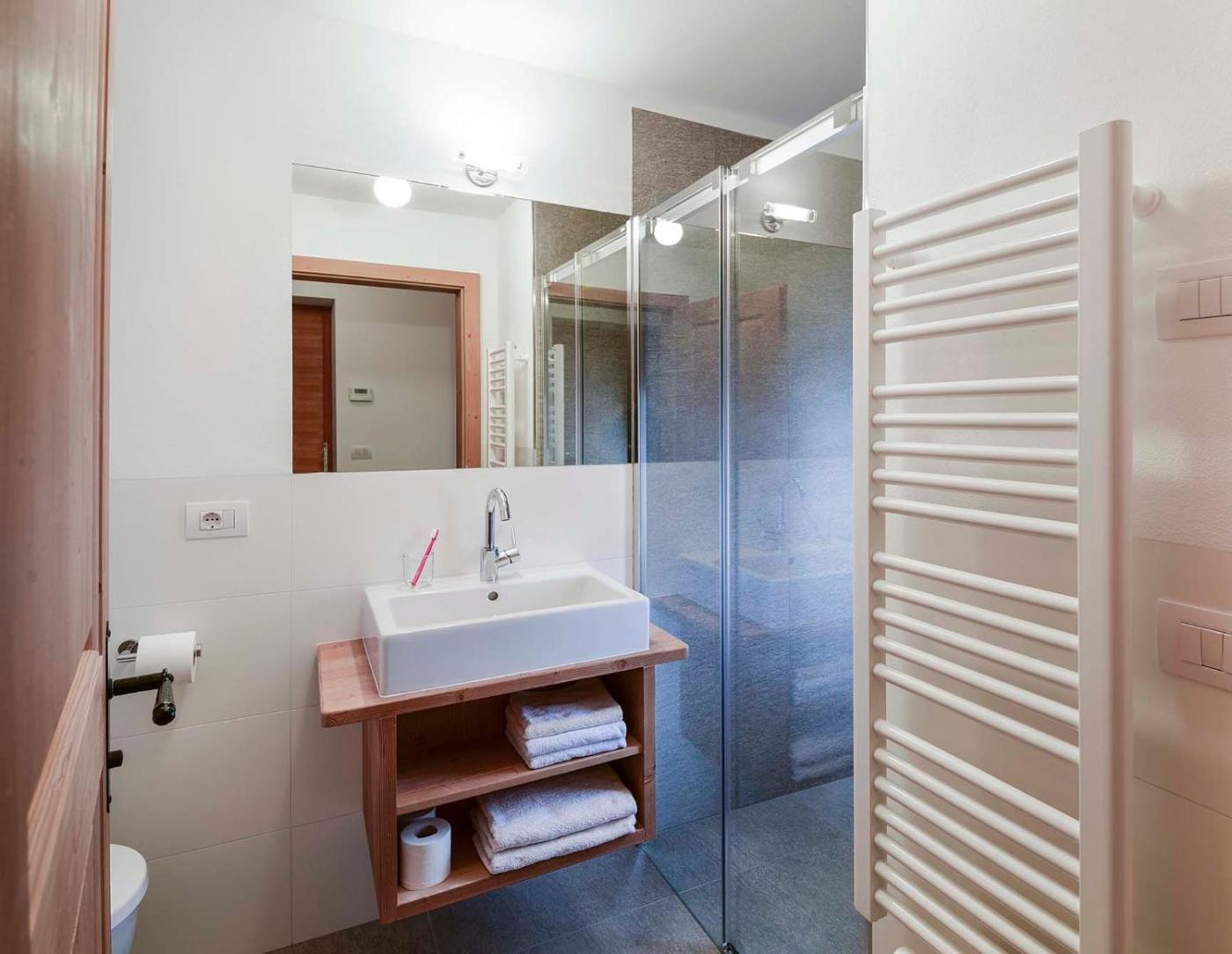 Appartamento con 2 Camere da Letto e Balcone - Hocheckstraße 4, Almrausch 3. This apartment is located on the 1st floor and comes with a living area with a sofa bed, a well-equipped kitchen and a balcony offering views of the Sexten Dolomites. In addition, it features 1 garage parking space and a bathroom with a shower. Guests can also use the shared ski storage room with a ski boot dryer in the building. This unit is located at Hocheckstraße, 4.